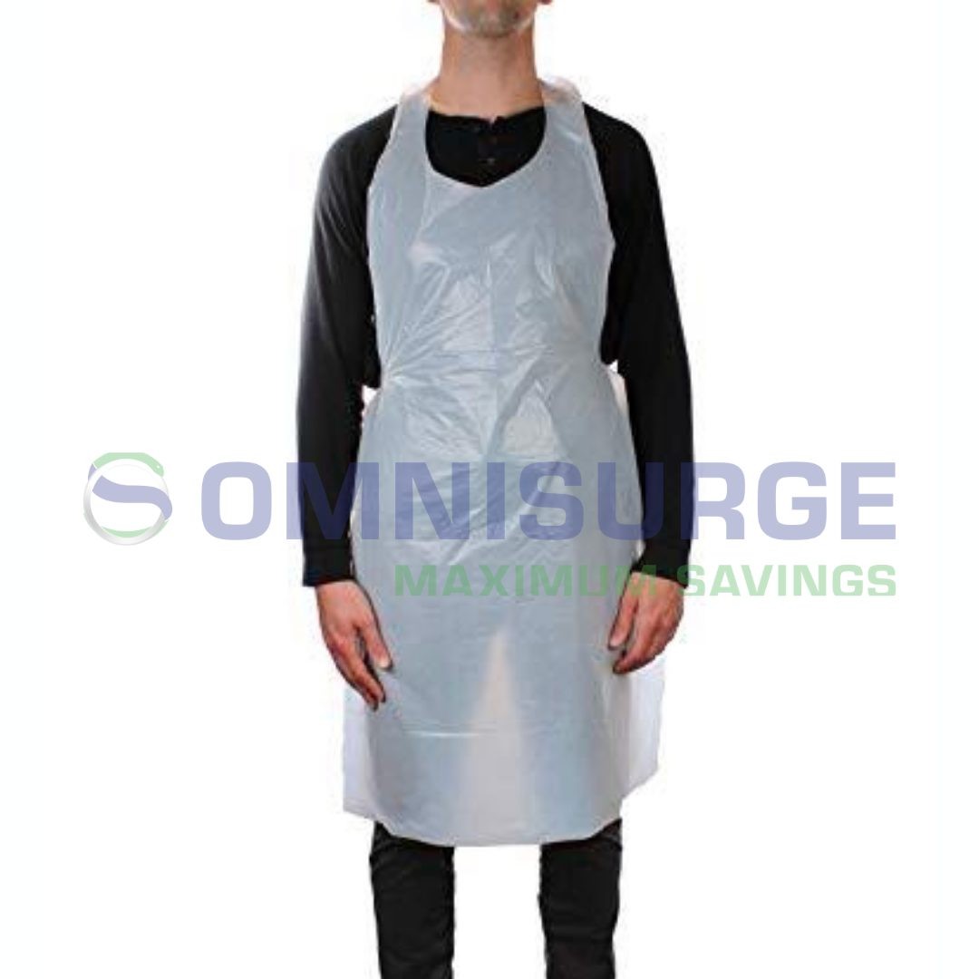 Single-use, disposable Aprons. Waterproof protection for light duty. Made from premium quality Polyethylene. Contains no latex.